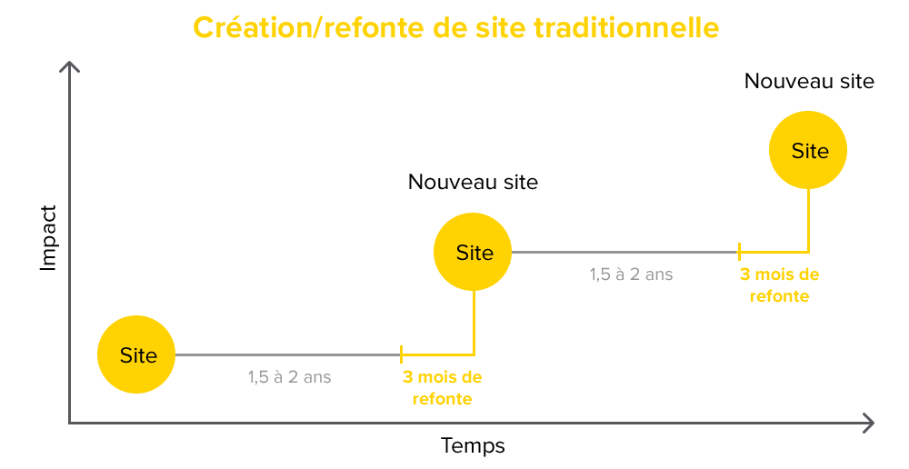 Pourtant, cette approche traditionnelle connaissant de nombreux déboires, il était important de pouvoir lui apporter une alternative performante et de renouveler la façon de concevoir et refondre les sites internet. En effet, votre site est tout de même au coeur de votre stratégie.